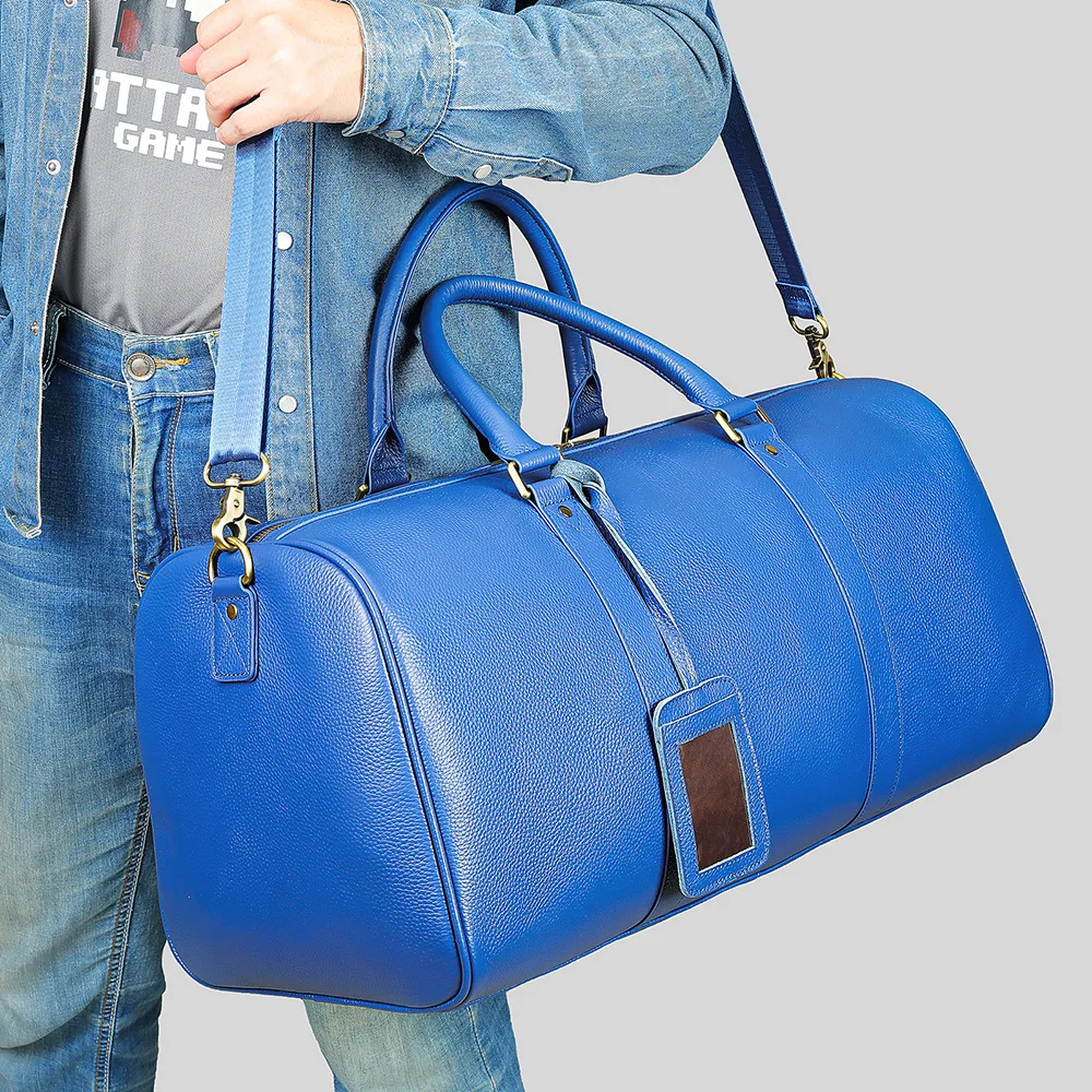Big Capacity Genuine Leather Travel Bags Men Women Soft Black Cowhide Casual Travel Duffel High Quality Cow Leather Shoulder Bag
