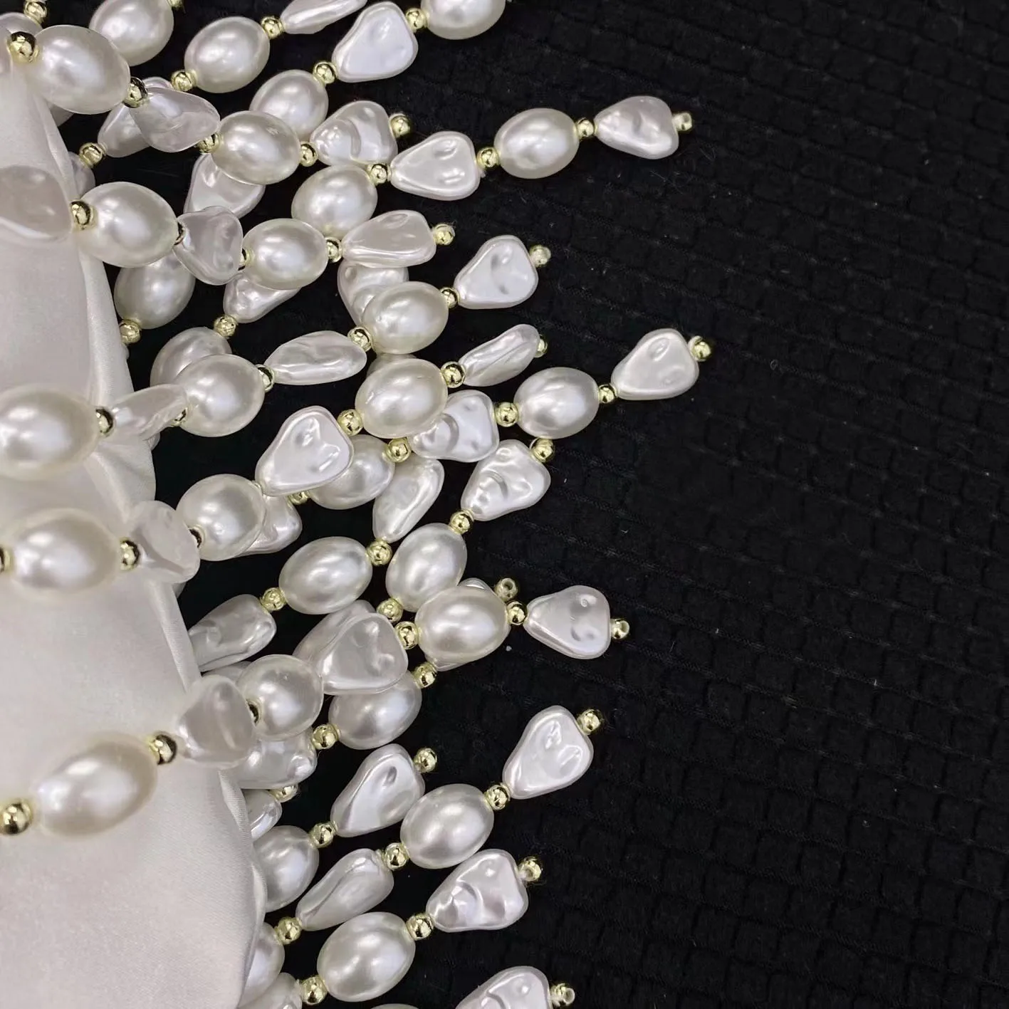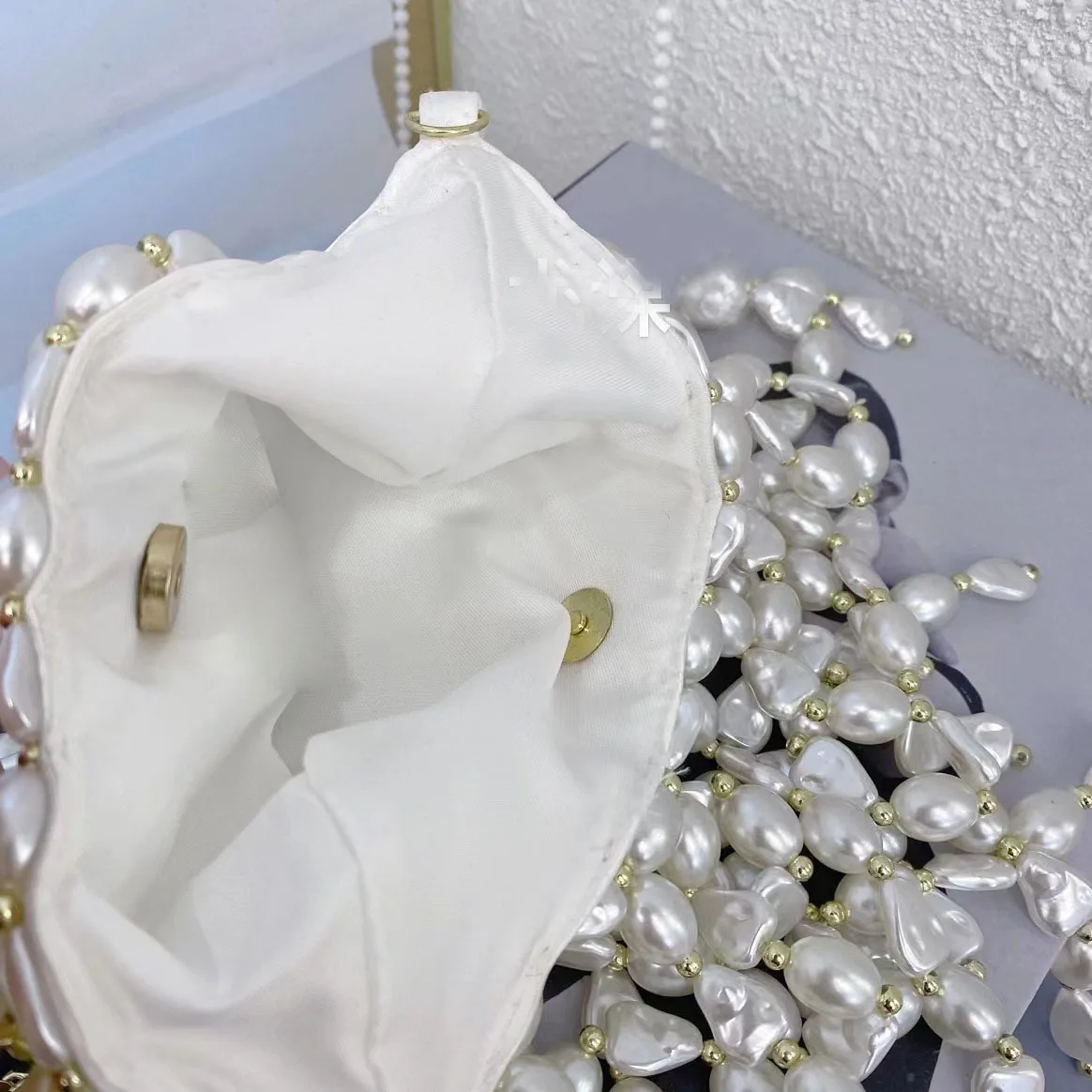 Fashion Ivory Pearl Bead Satin Purse Wedding Small Prom Evening Clutches Bag Crossbody Bag Women Luxury Tote Party Day Handbag