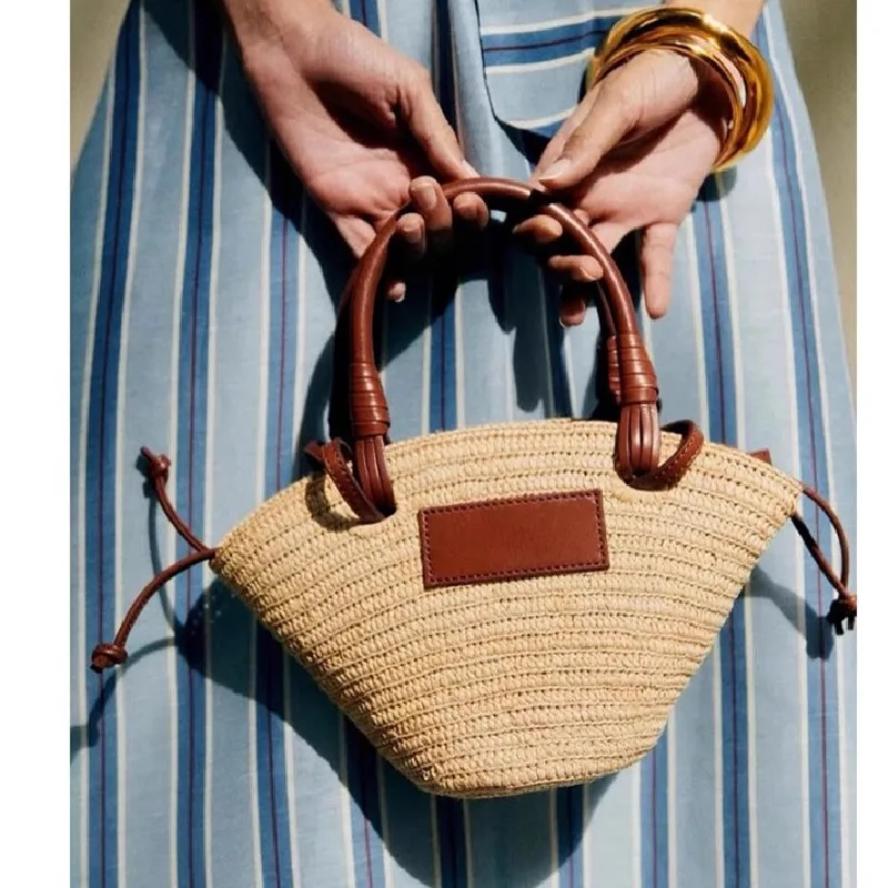Vintage Style Straw Baskets Bag Raffia Circle Rattan Material Woven Shoulder Bag Handmade Woven small Beach Bag